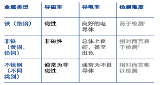 常使用的標準測試塊主要有三種:鐵(Fe)、非鐵(NonFe,一般是銅)和不銹鋼(SS或者SUS)。而對于這三種金屬類型,金屬檢測機的檢測難易程度也有所區別。